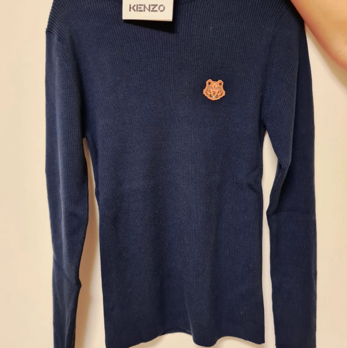 Blå kenzo tröja, strlk M men passar även S: klassisk blå tröja men märket i hörnet. Endast provad en gång. Kvitto finns och prislapp sitter kvar. Nypris: 3399kr Mitt pris: 1400.