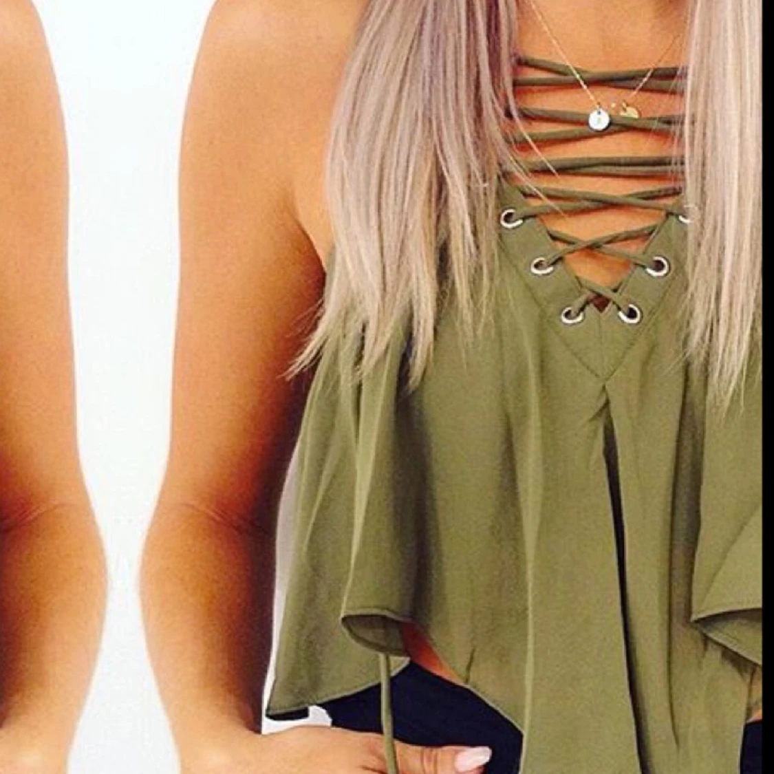Kort topp med snörning där fram. Dragkedja finns där bak. Oanvänd!