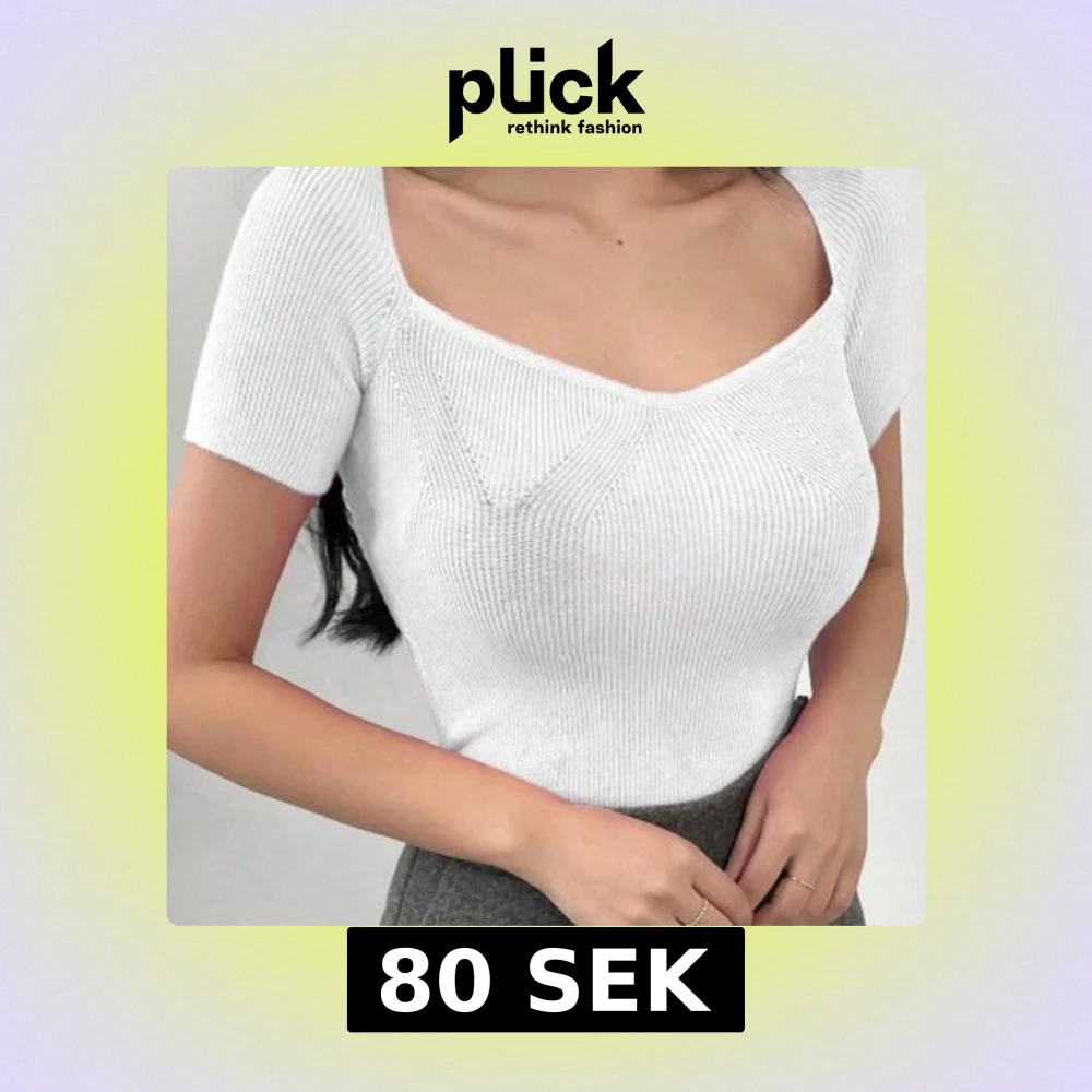 Snygg vit ribbad topp med korta ärmar och en v-ringad design. Perfekt för en stilren look.