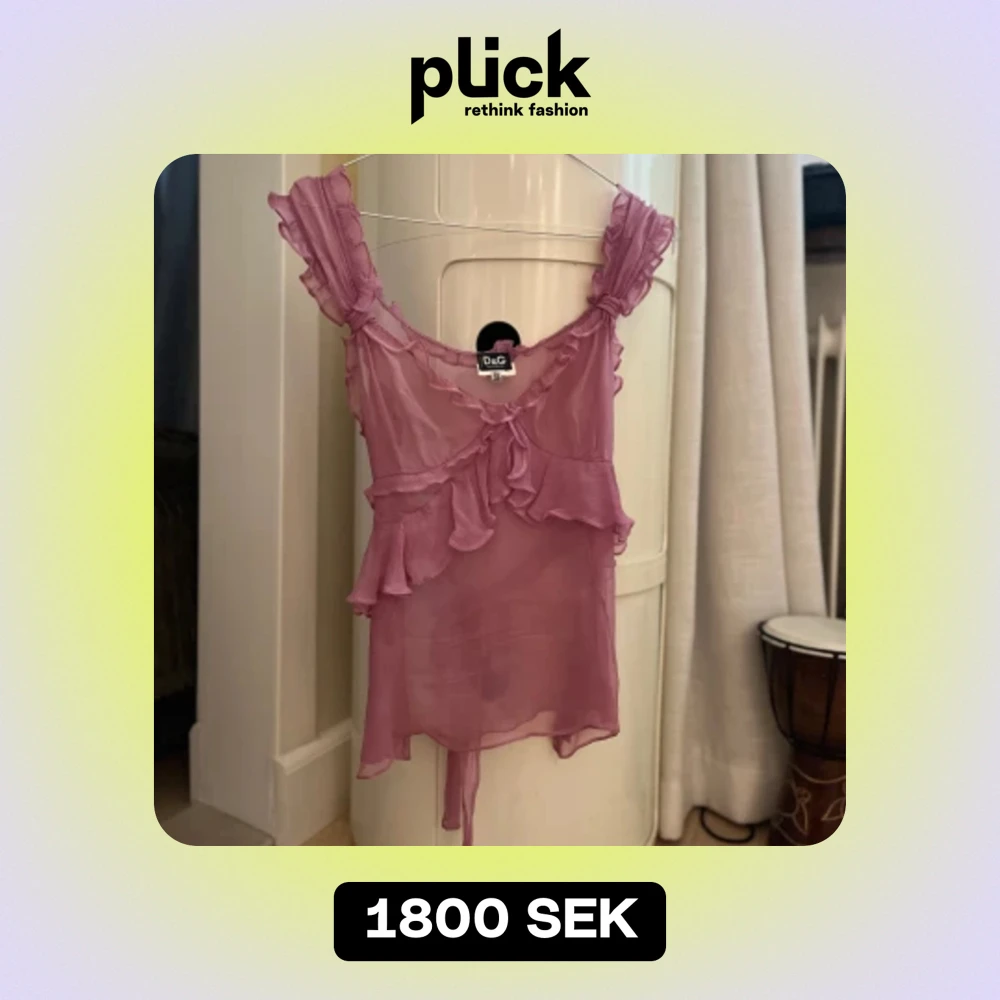Lila linne/blus från Dolce & Gabbana. Toppen skick med vackra volanger. Dragkedja i sidan för att enkelt få på och av toppen samt ett knyte i rygg som även går att knytas fram. Storlek är en italiensk 26/40. Runt XS (jag bär S/36kr