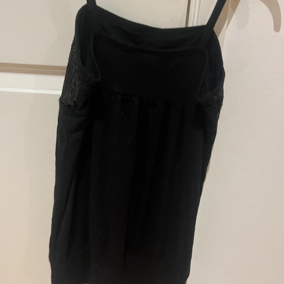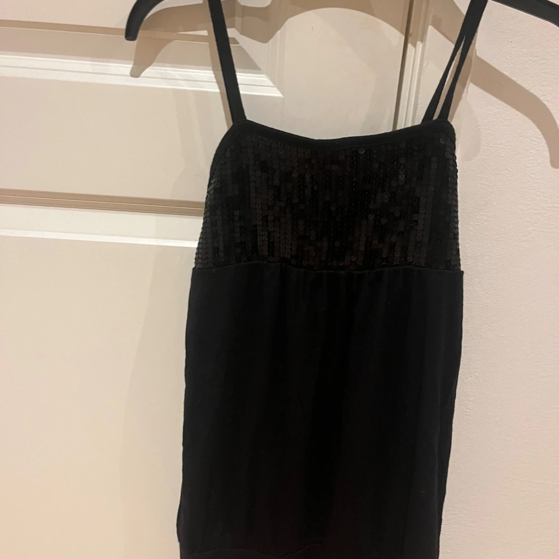 Jätte fint svart linne med glitter paljetter och resor längst ner. Man kan ha de som ett linne med resåren men den är väldigt stretchig så kan även användas som klänning!💗