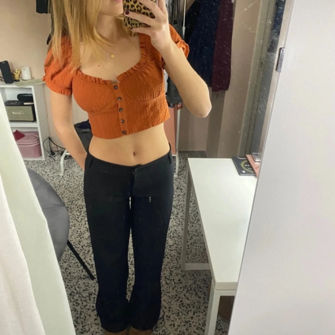 Säljer en supersöt orange topp med knappar framtill. Den är kortare och har en snygg passform som är perfekt för sommaren. Perfekt för både vardag och fest! 🩷