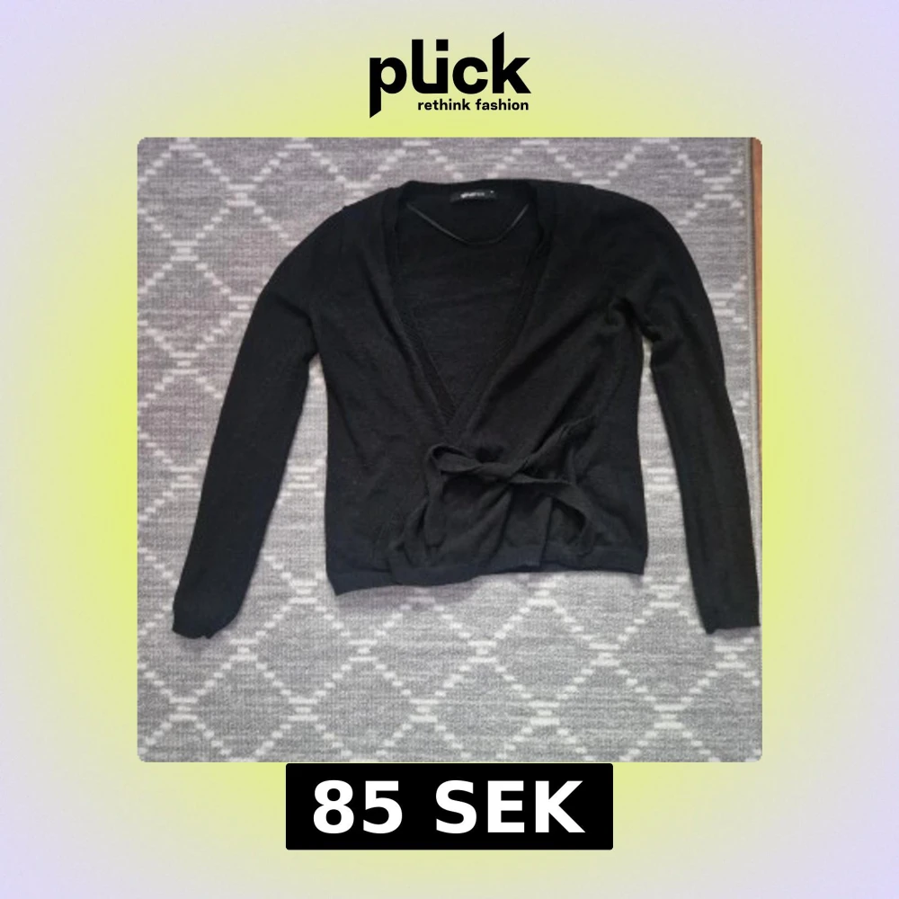 Svart omlottkofta från Gina Tricot med knyt i midjan. Långärmad och i mjukt, tunt stickat material. Perfekt att slänga över en topp för en enkel och stilren look.