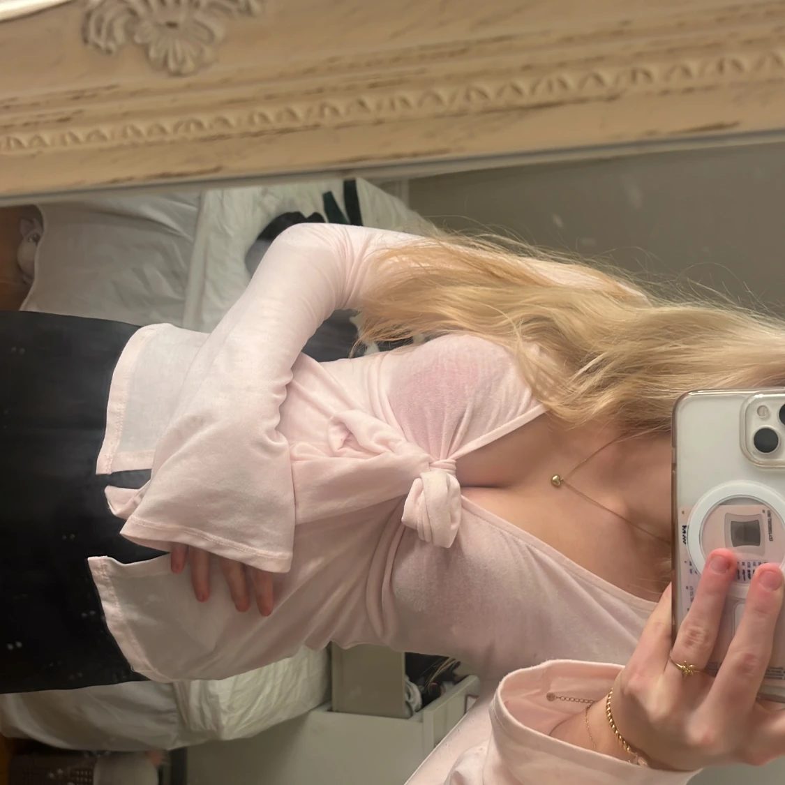 Söt knyt topp från Gina stl Xs❣️en liten fläck (se bild 2) men som knappt syns när tröjan är på!