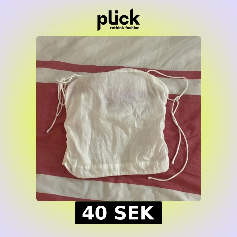 Säljer en söt vit axelbandslös topp med knytband. Toppen har en smockad detalj på baksidan för bättre passform. Perfekt för varma sommardagar!