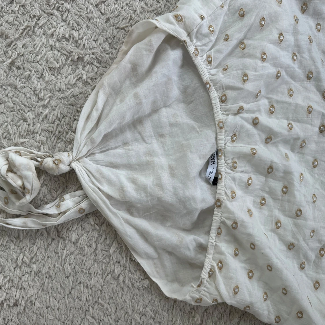 Skitsnygg halterneck/knyttopp från Zara som inte säljs längre! Enda defekten är lite missfärgning (se sista bilden), annars fint skick🥰