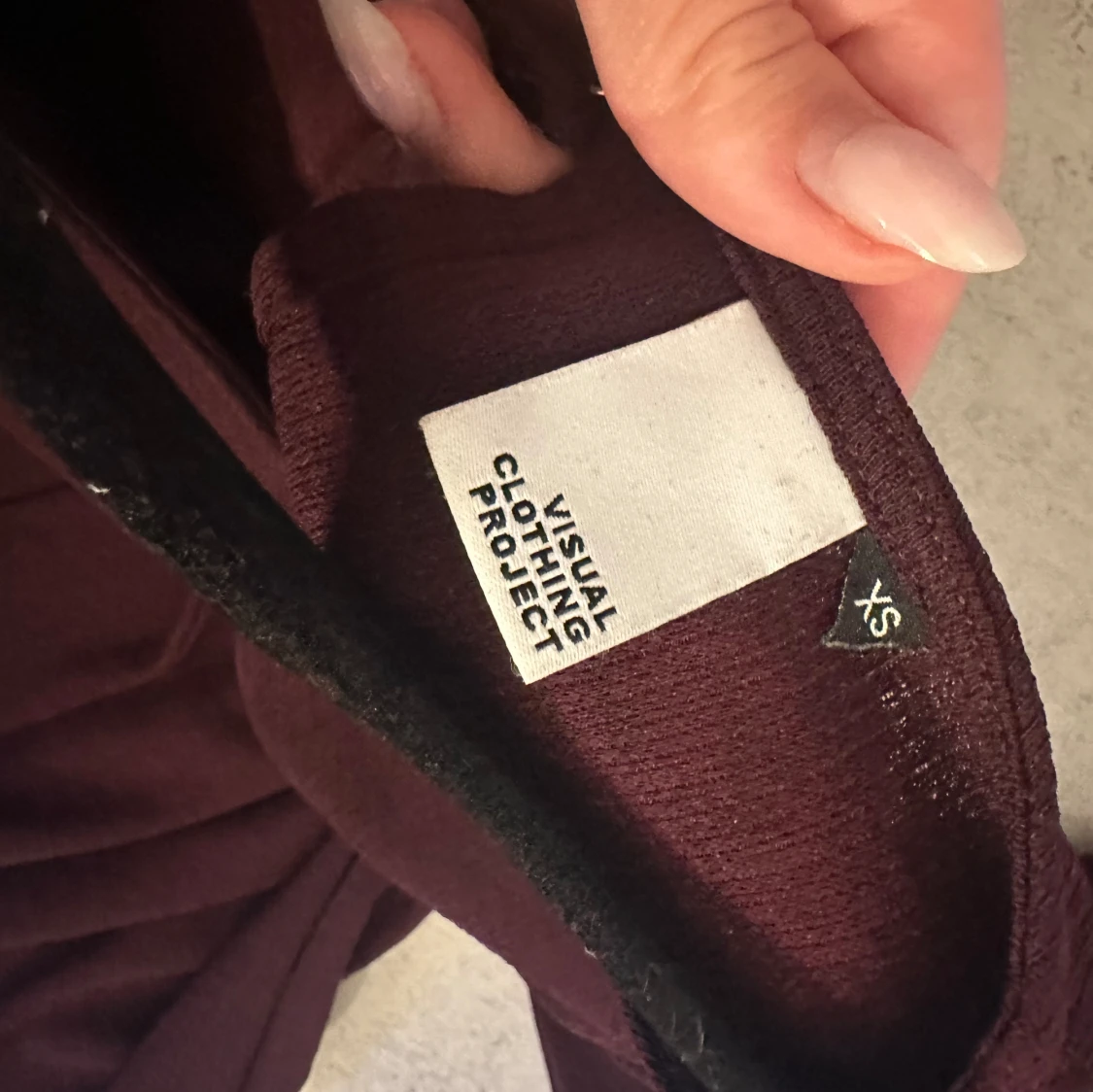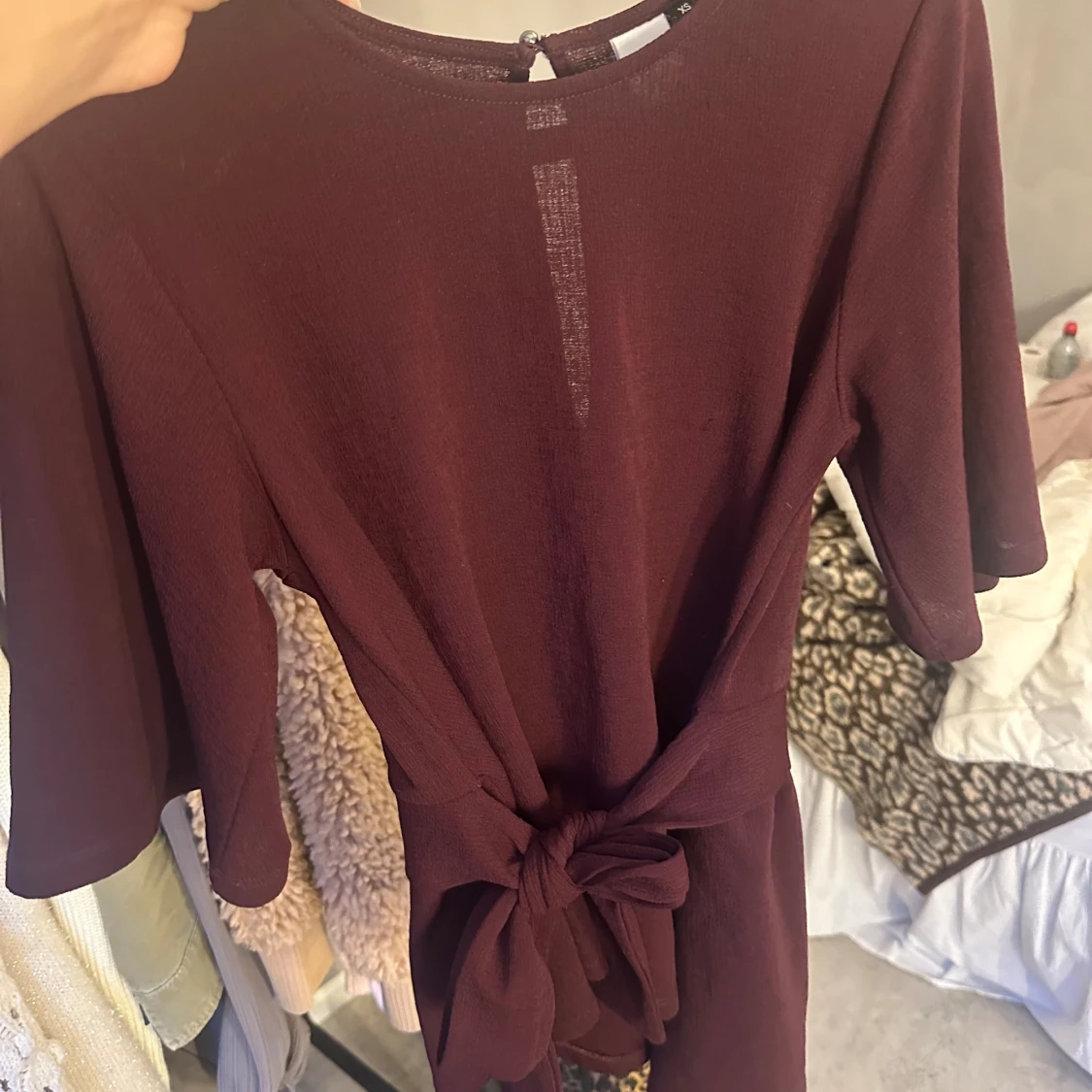 Mörkröd knyttopp från visual clothing projekt i xs men passar större också då man knyter den. Köpt på ellos för länge sen