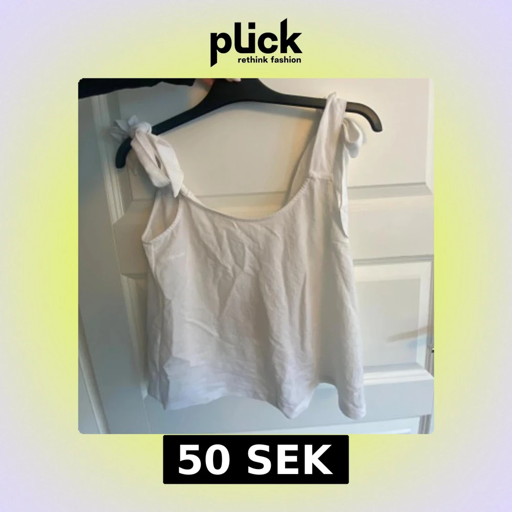 Superfin vit linnetopp med breda axelband som knyts i stora rosetter på axlarna. Toppen har en avslappnad passform och är tillverkad i ett svalt material, perfekt för varma dagar. Enkel och stilren design som är lätt att matcha med allt.