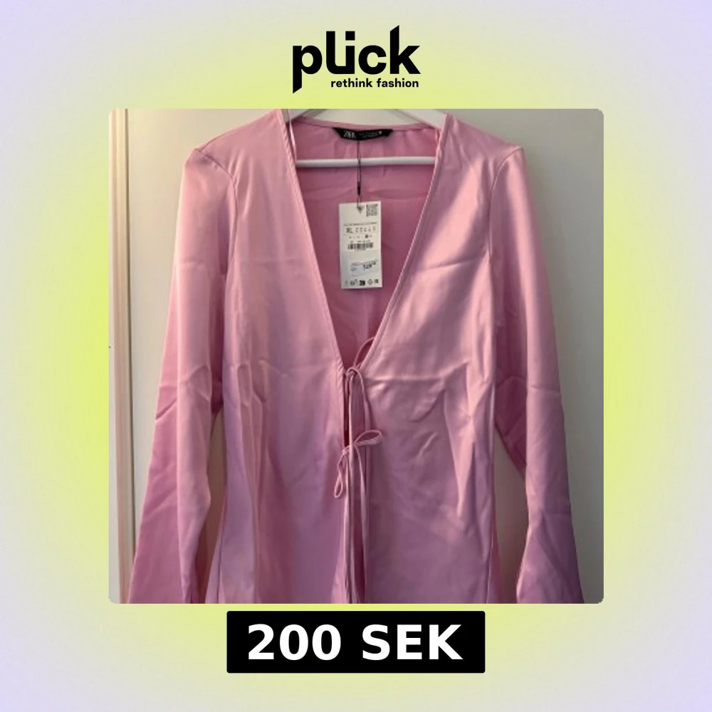 Säljer en stilren rosa långärmad topp från Zara. Toppen har en knytning framtill och är tillverkad i ett glansigt material som ger en elegant look. Aldrig använd med prislappen kvar. Liten i storlek, passar M/L.