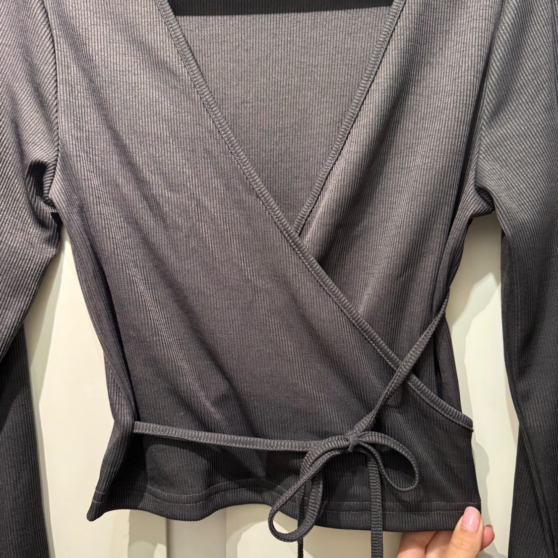 Säljer en grå ribbad omlottopp från BikBok i storlek S. Toppen har långa ärmar, v-ringning och knytband i midjan. Skriv för mer bilder och frågor så svarar jag så fort jag kan pris går altid att diskuteras💕💕.