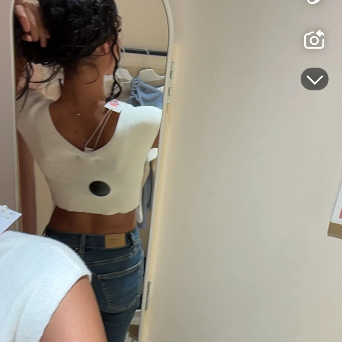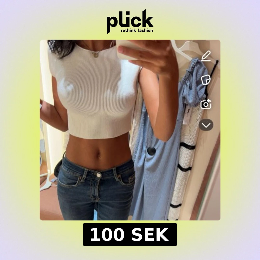 Säljer en vit croppad topp med ribbad struktur. Toppen är ärmlös och har rund halsringning fram och v-ringning bak. Perfekt för dig som gillar en enkel men trendig stil. Sitter tight och framhäver midjan.