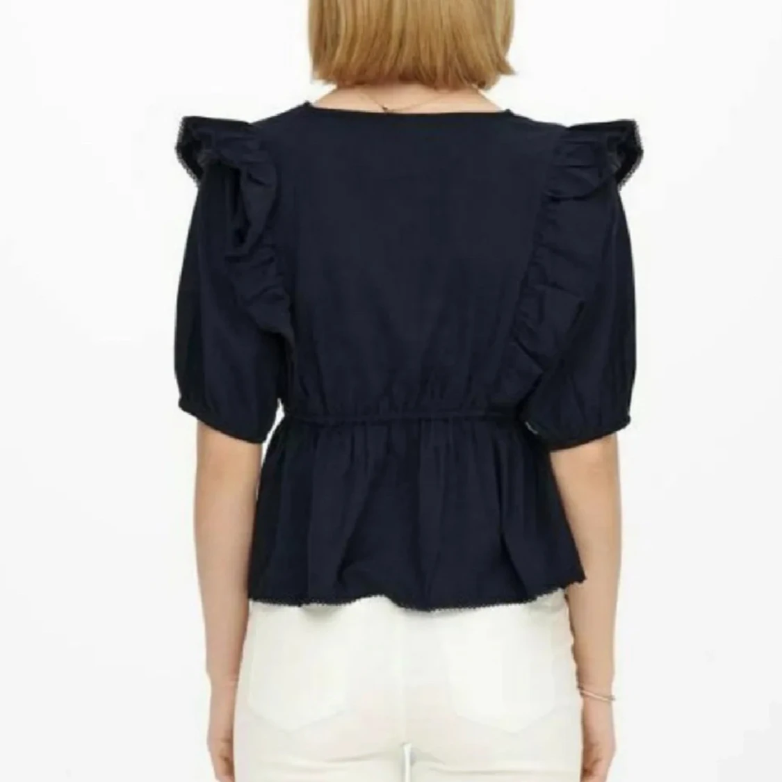 Supersöt mörkblå blus från JDY som sitter så fint på!! Resår i midjan ger en snygg siluett. Perfekt att styla med kjol eller jeans🤗🤗💕💕
