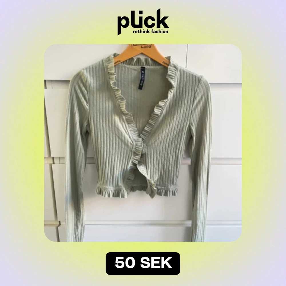 Tunn kofta i grönt, stängs med 2 knappar. Kan även användas som tröja. Storlek XXS-XS