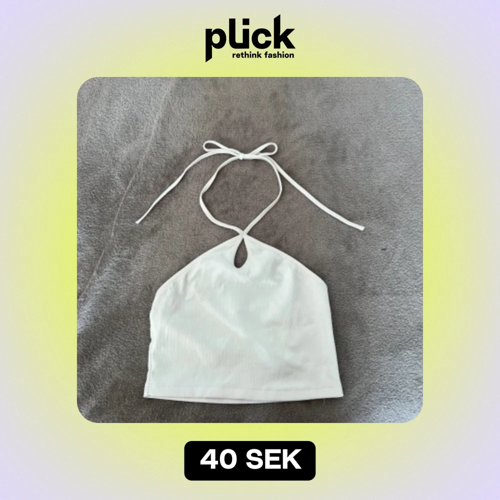 Säljer en superfin vit ribbad halterneck topp. Den är ärmlös och har en knytning i nacken. Perfekt för sommardagar eller en festkväll. Toppen är i ett mjukt och stretchigt material som sitter bekvämt.