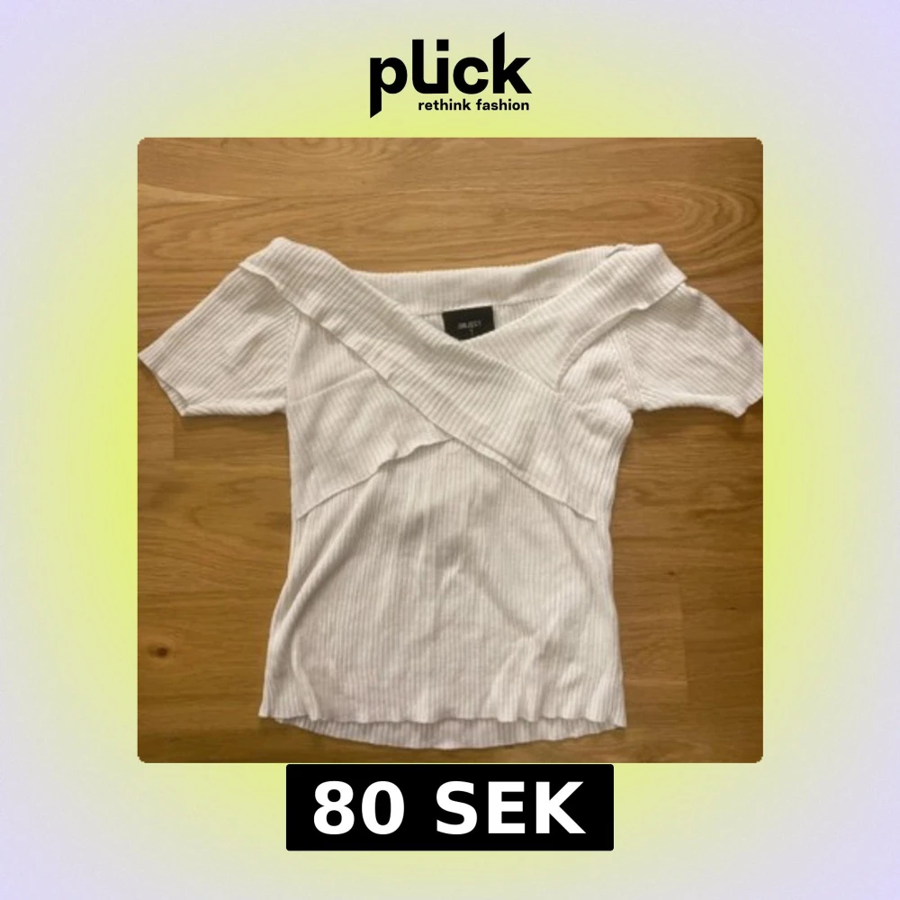 Snygg vit ribbad topp från Object med korta ärmar och omlott-design. Perfekt för en stilren look.