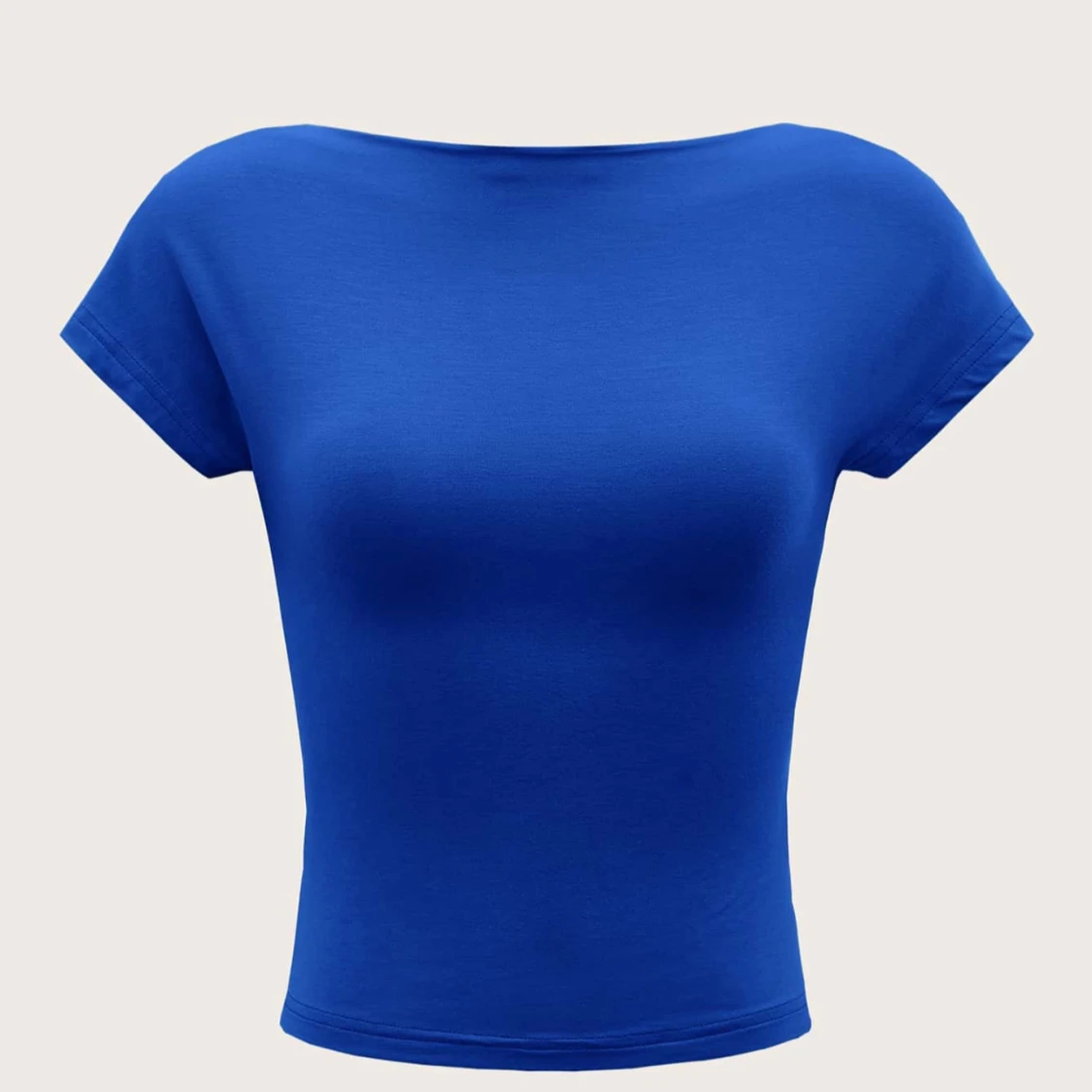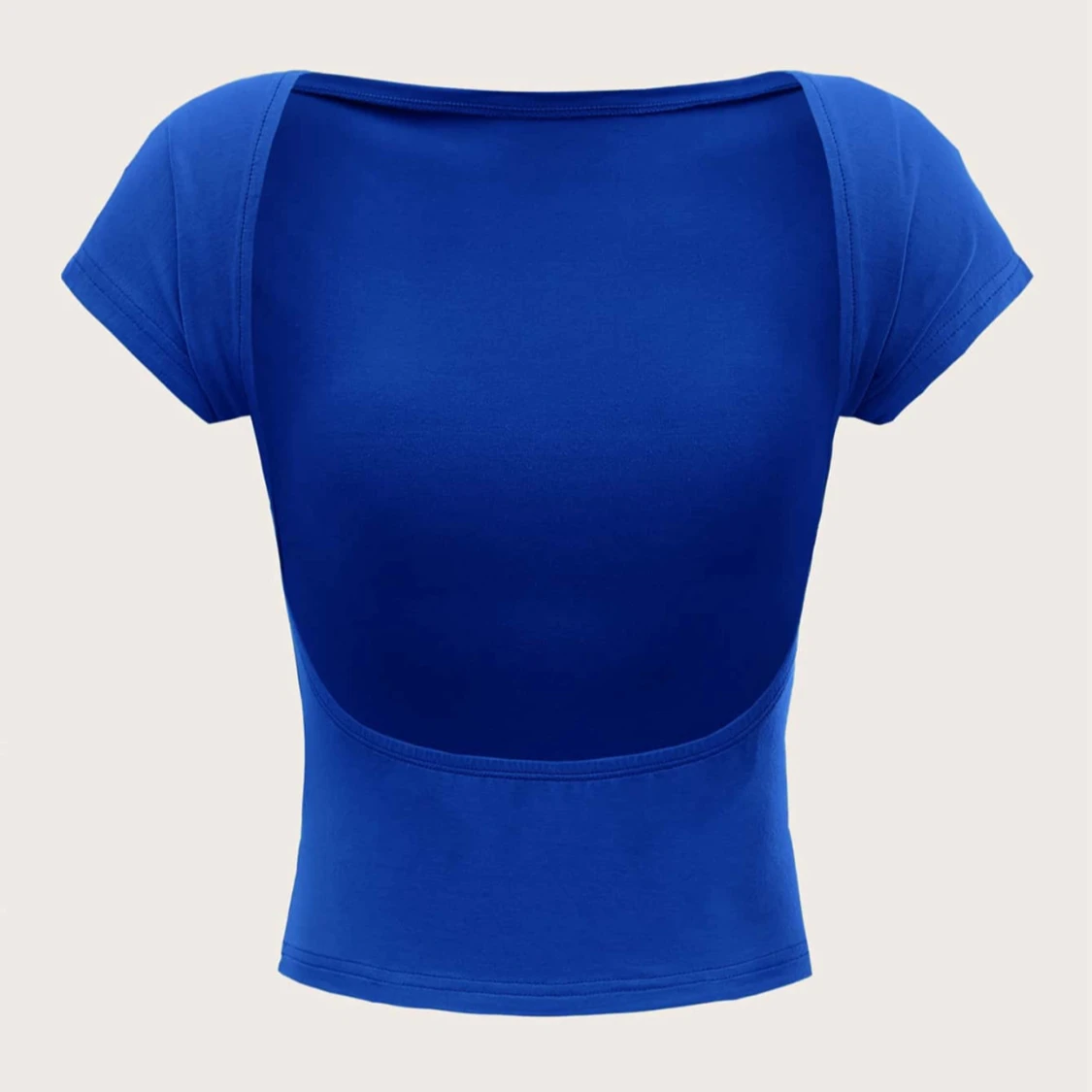 Snygg kornblå croppad topp med korta ärmar och en öppen rygg. Toppen har en tight passform och är tillverkad i mjuk bomullsmix. Perfekt för dig som vill sticka ut med en enkel men cool look.