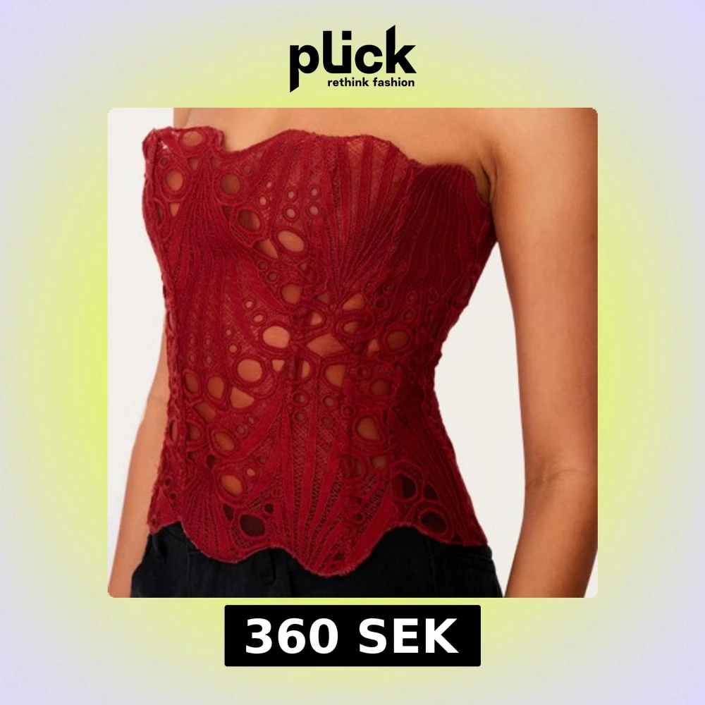 Snygg röd korsett med spetsdetaljer och ett unikt mönster.