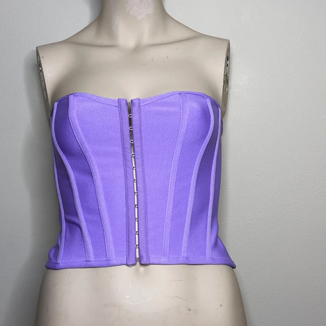 Snygg lila korsett från PrettyLittleThing i en härlig polyesterblandning. Den har en stilren design med hakknäppning framtill och ger en smickrande passform. Ger brösten ett fint lyft.