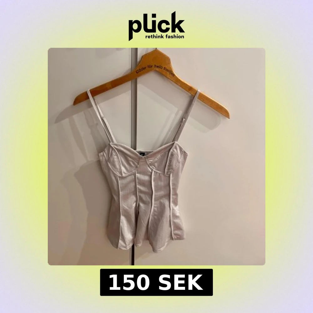 Använd endast en gång, har ingen bild med den på men har en exakt likadan i vit så där ser ni! Det är en typ grå/beige färg som e jätte najs 🩷 Den är storlek XS och sitter ganska tajt på mig som brukar ha storlek S!