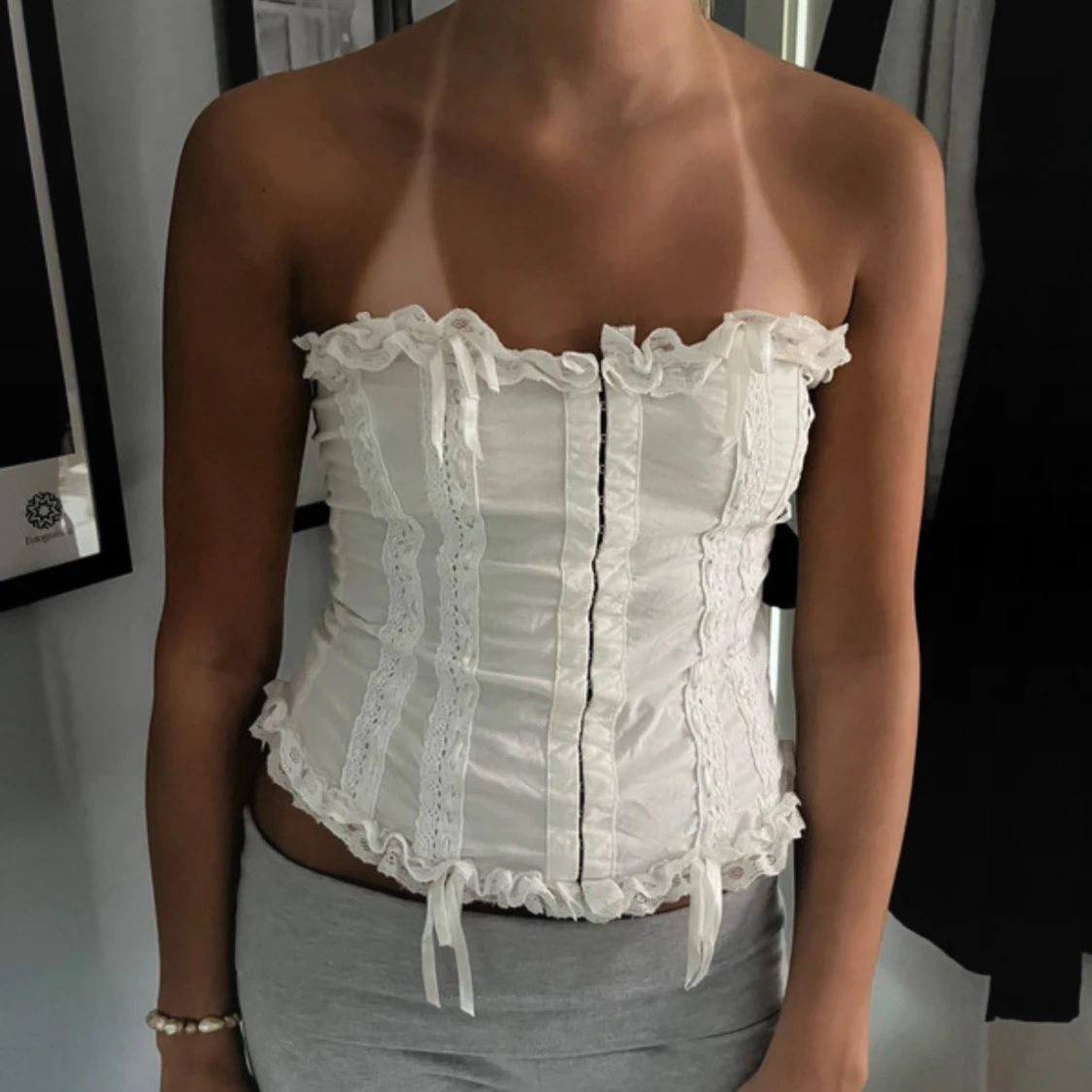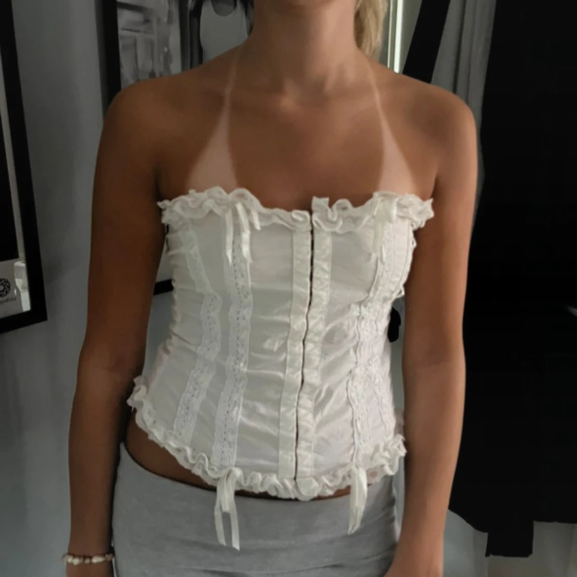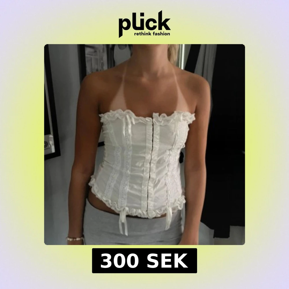 Jättefin topp!! Står storlek L på lappen men passar mig som har S <33 Går att reglera storleken med snörena där bak