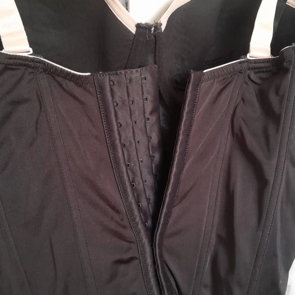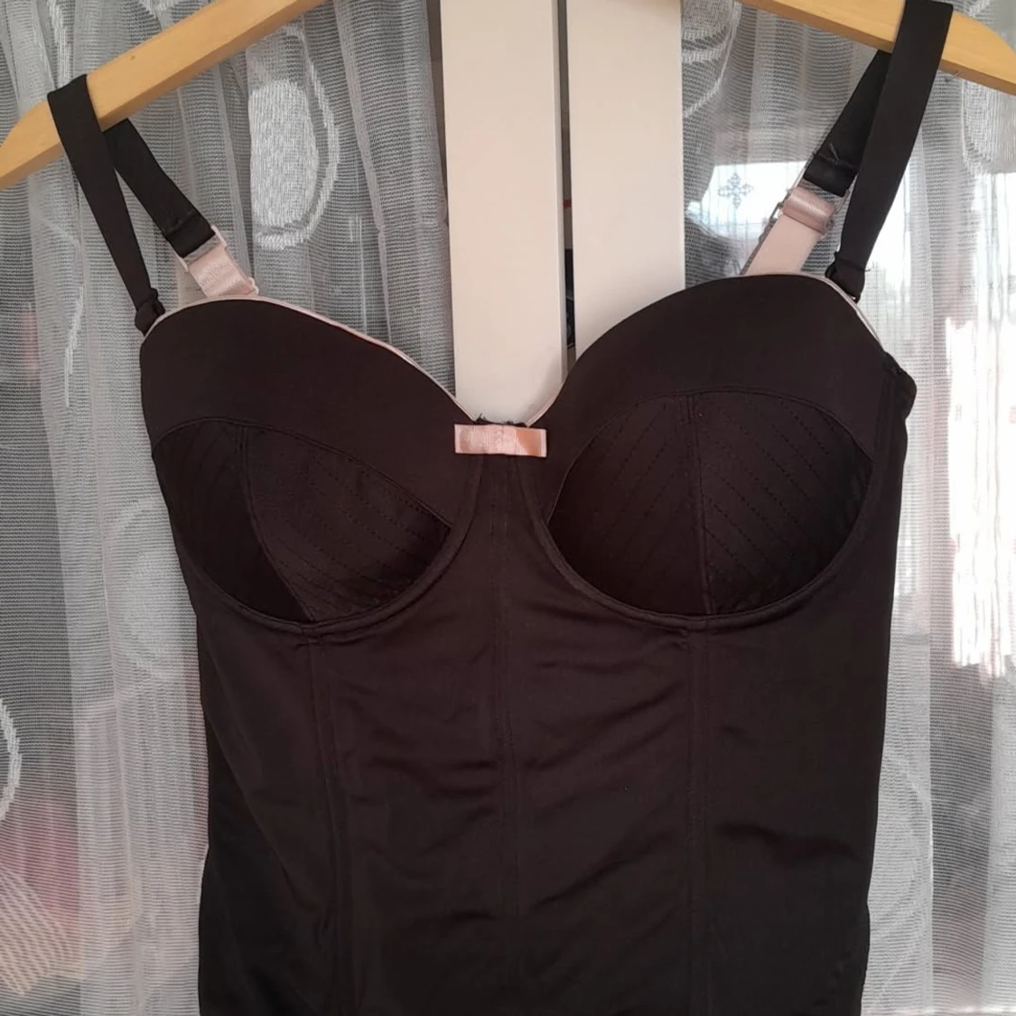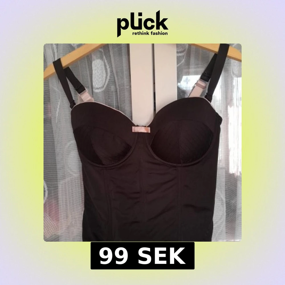 Snygg svart korsett, jätte bra kvalité. Den är svart med rosa detaljer och har storlek 80D i cup. Jätte finna detaljer 🖤🖤🩷🩷. Säljer den för att den var för stor för mig. Jag skulle säga att den har S-M str. (Köptes på Sekond Hand)