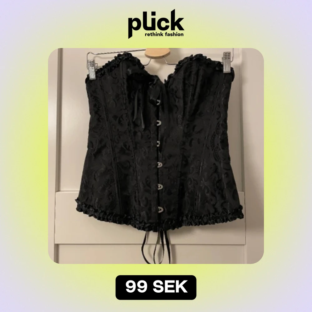 Jättefin svart korsett med band där bak som man kan justera. Aldrig använd! Det står storlek L men den passar mer som XS/S