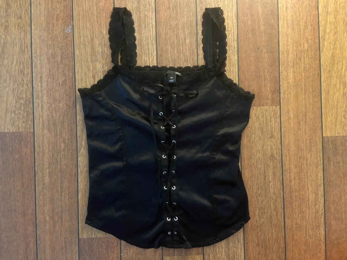 Det ser ut som en korsett men det är ett linne dvs mjukt stretchigt material. Jättesöt!