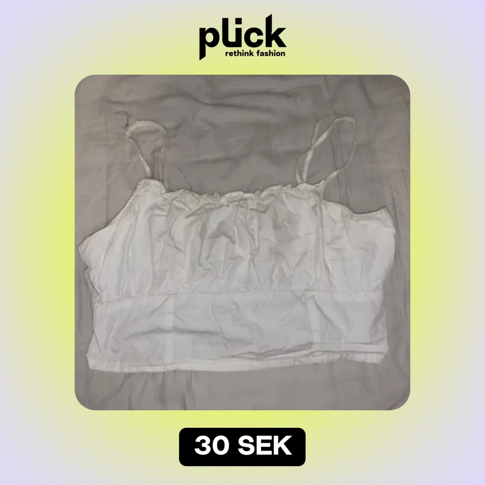 En ganska kort vit topp från h&m kostade 78kr men säljer för 30kr eftersom den är välanvänd men i bra skick