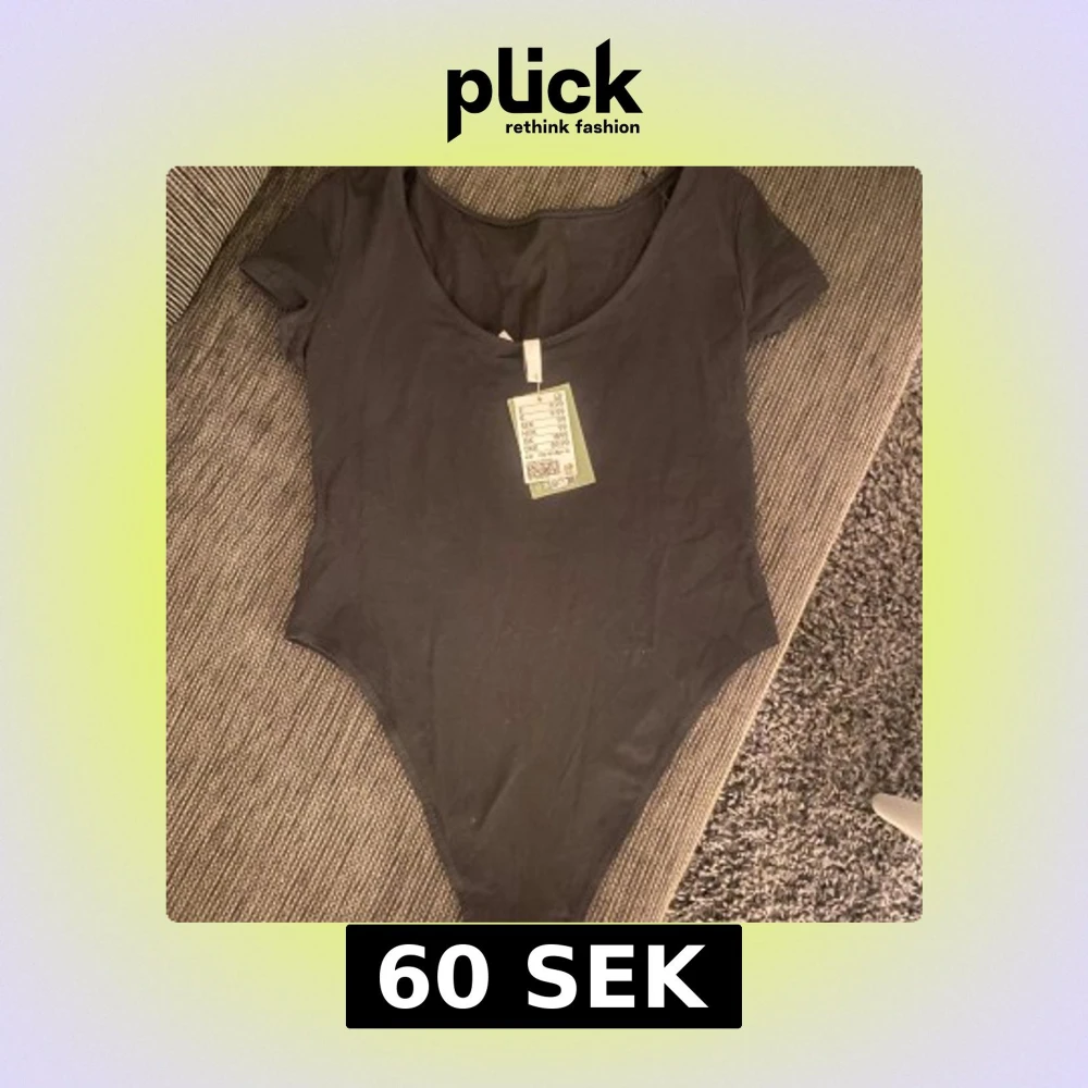 Säljer en stilren svart bodysuit med korta ärmar och rund urringning bak till. Den har knäppning i grenen.