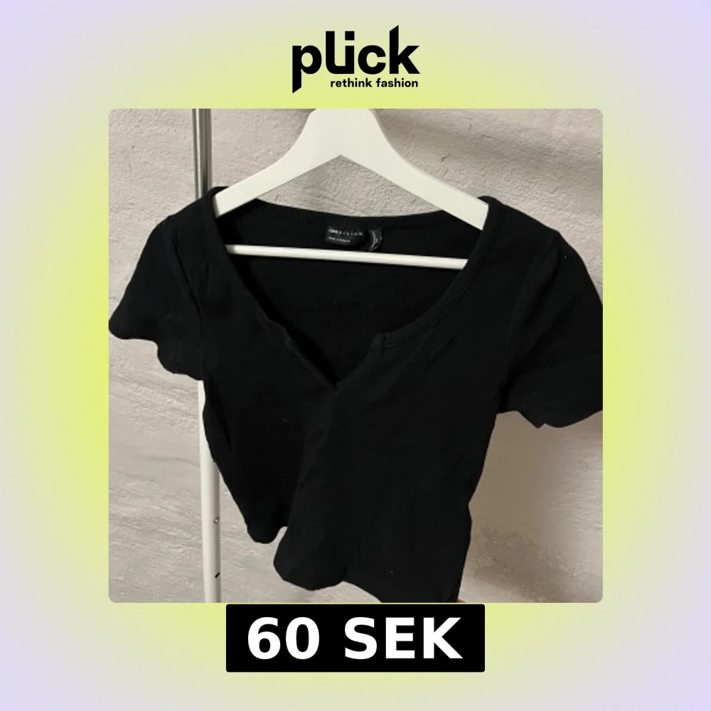 Säljer en stilren svart topp från ASOS Design. Den har en v-ringad hals och korta ärmar, perfekt för en enkel och snygg look. Tillverkad i ett mjukt material som ger en skön passform.