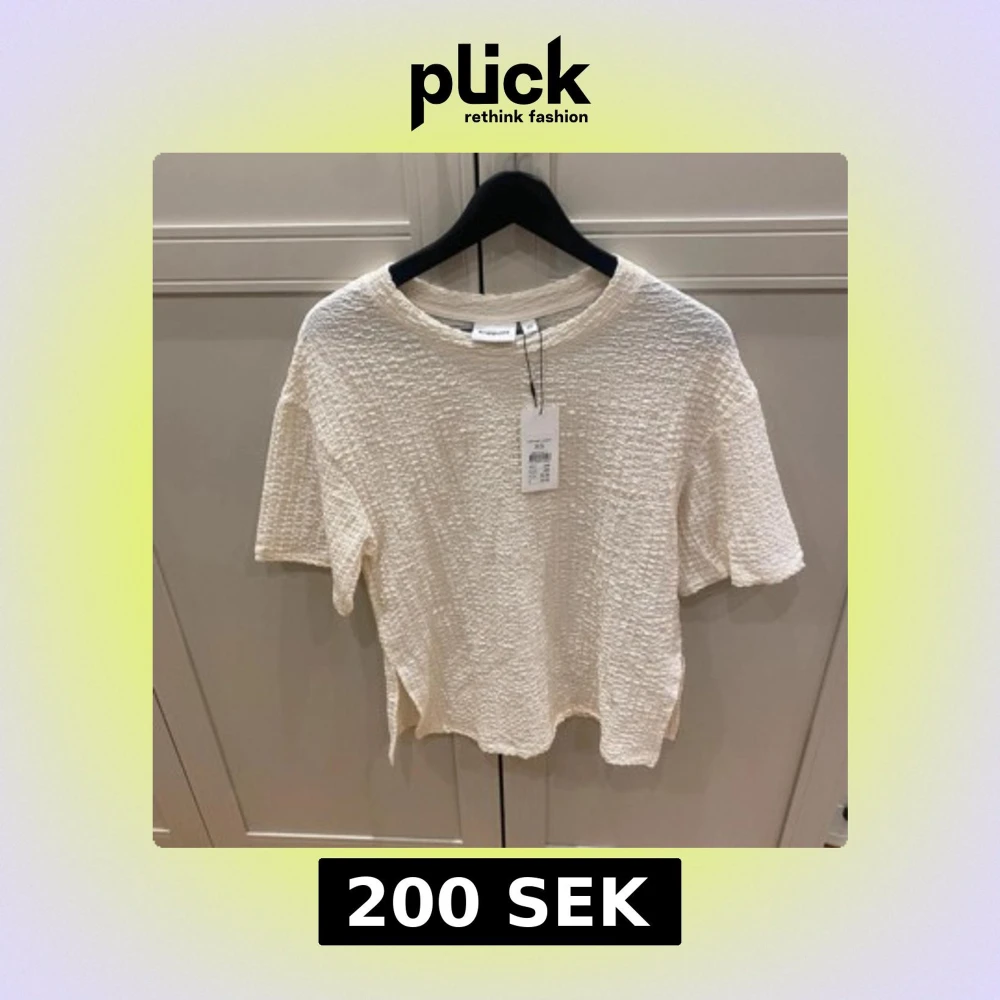 Säljer en krämvit topp från Kappahl i storlek XS. Toppen har en cool strukturerad yta, rund halsringning och korta ärmar. Materialet känns mjukt och har en unik textur som gör den extra intressant. Perfekt för dig som gillar stilrena och moderna plagg.