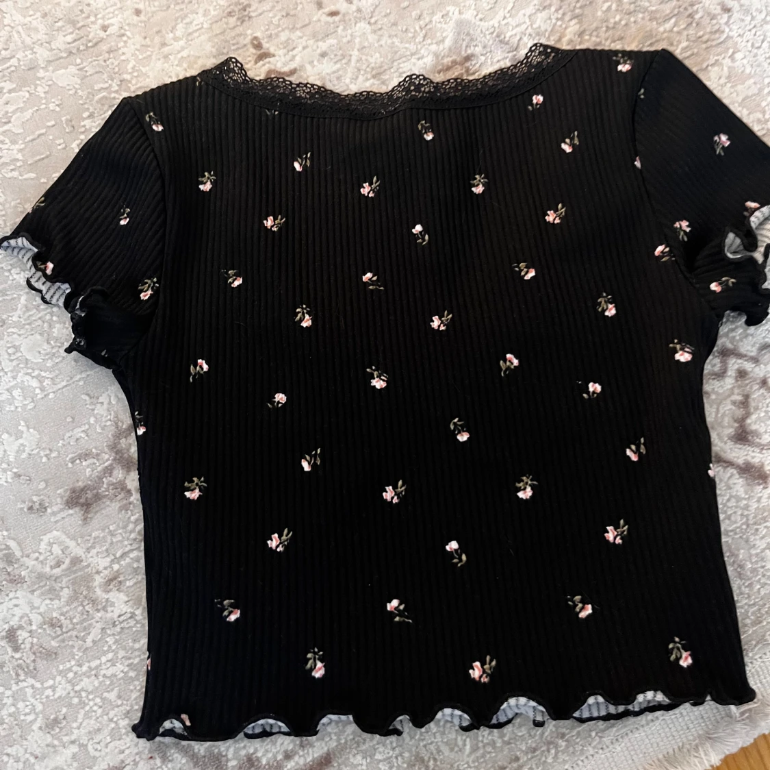 Säljer dennna fina kroppar T-shirten med blommor och detaljer, för liten storlek för mig, i bra skick.💗 storlek xxs