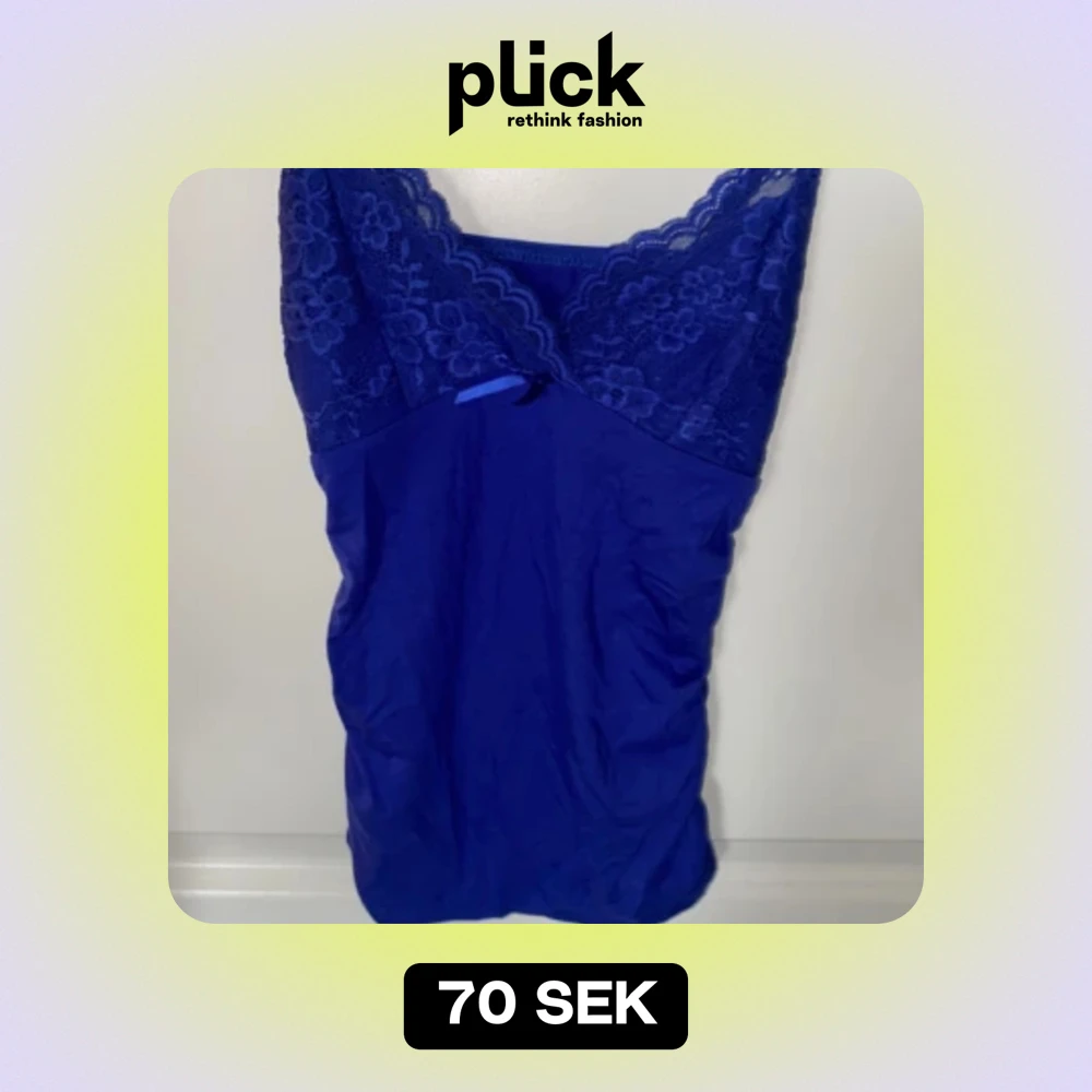 Ett kungsblått linne med spets, den har lite sceunch på sidorna som formar midjan så fint!
