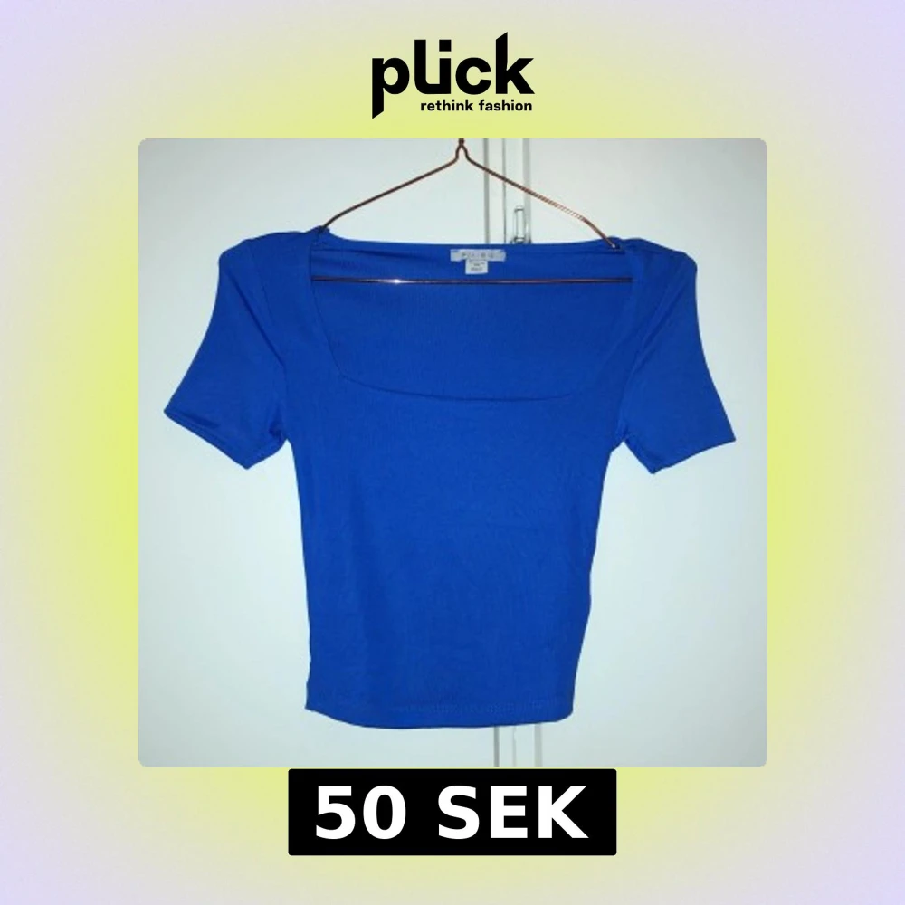 Kungsblå topp från New yorker, Amisu i stretchigt material med korta ärmar och snygg fyrkantig ringning. Modellen är figurnära och croppad, perfekt till jeans eller kjol. Enkel och stilren design utan mönster eller detaljer. Aldrig använd endast testad så superbra skick!!!