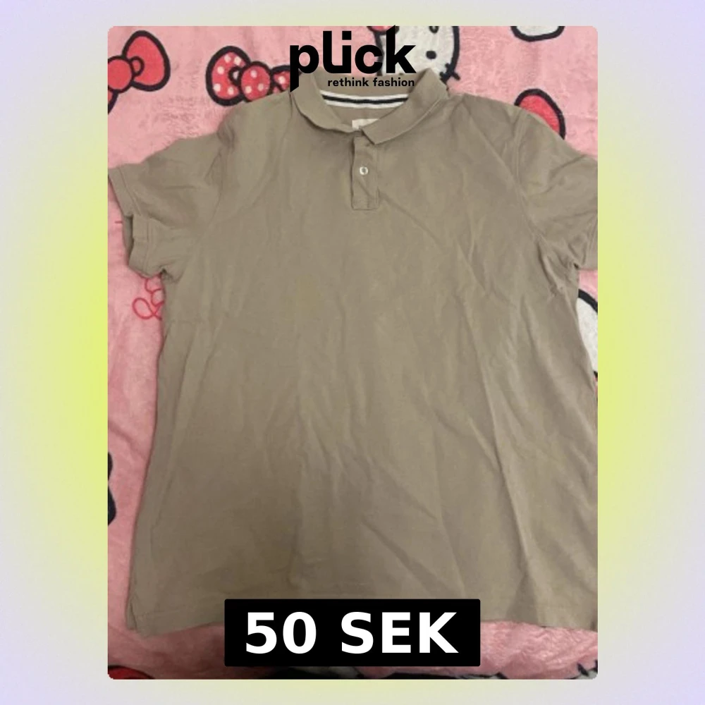 Klassisk beige pikétröja med korta ärmar och krage. Tröjan har två knappar vid halsen och en diskret randig detalj på insidan av kragen. Perfekt till en avslappnad och stilren look.