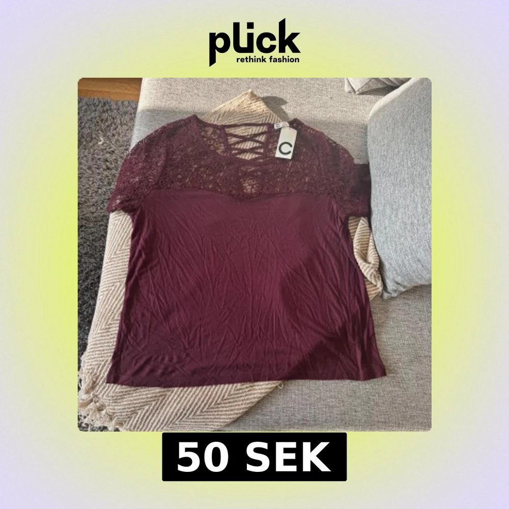 Supersnygg vinröd blus från Cubus med spets upptill och trendig snörning vid halsen. Blusen har korta ärmar och en mjuk, stretchig känsla i tyget. Perfekt för dig som gillar detaljer och vill sticka ut lite extra.