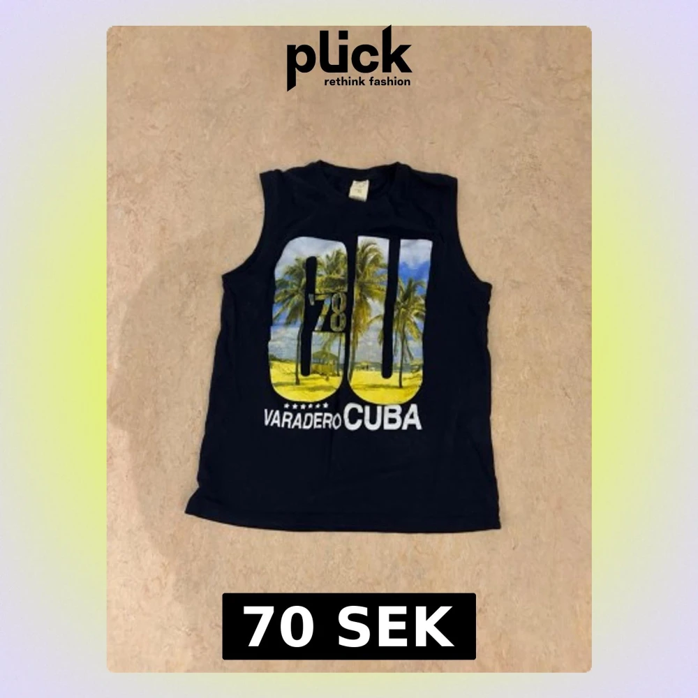 Snygg mörkblå ärmlös linnetopp med tryck av palmer och texten 'Varadero Cuba' framtill. Perfekt för sommardagar och strandhäng. Tillverkad i mjuk bomull för skön känsla och avslappnad stil. Vid mer info kontakta gärna! ABS! Pris går att diskutera!