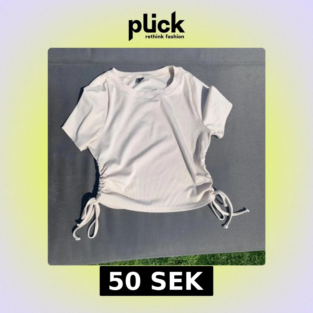 Superfin ljus beige ribbad topp med kort ärm och snörning i båda sidorna som ger en snygg croppad look. Perfekt till jeans eller kjol för en fräsch och enkel stil. Mjuk och stretchig, passar perfekt till varma dagar.