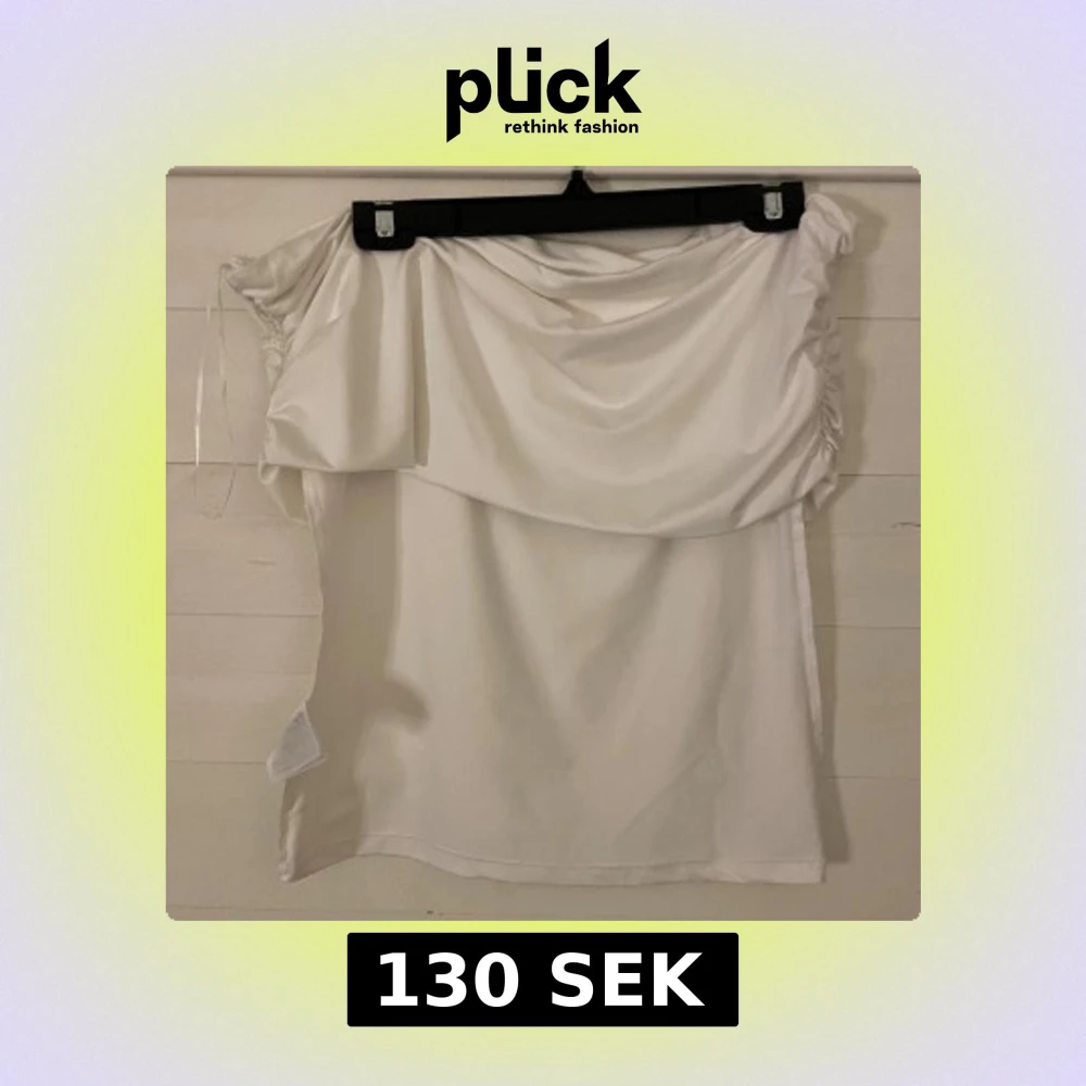Säljer en vit axelbandslös topp från H&M Divided i storlek L. Toppen har en snygg draperad överdel och lätt rynkade sidor för en cool look. Perfekt till sommarens outfits och enkel att styla med både jeans och kjol.