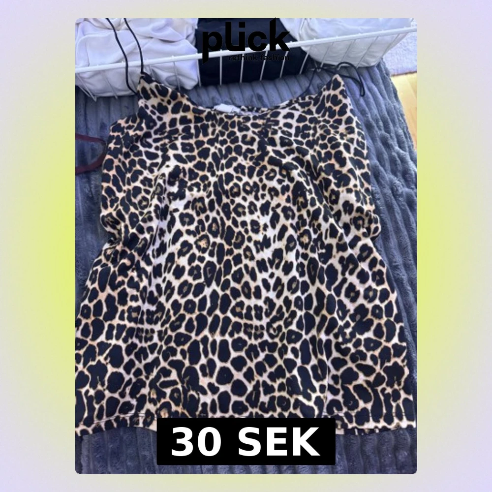 Säljer en snygg leopardmönstrad linnetopp med tunna axelband. Toppen har en loose passform och är i beige och svart med coolt djurmönster. Perfekt för dig som vill sticka ut och addera lite edge till din outfit.