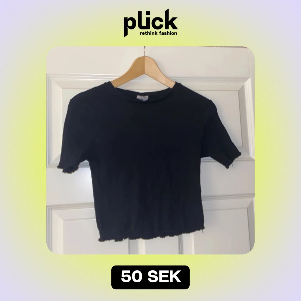 Säljer en svart ribbad crop-topp från Stories i storlek L. Den är croppad och har korta ärmar, perfekt för en avslappnad stil. Toppen är i bra skick och passar både till vardags och fest. 🖤