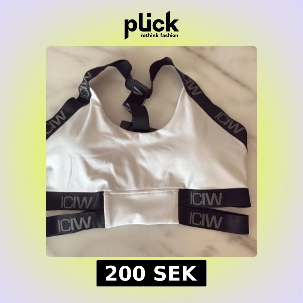 Snygg vit sporttopp från ICANIWILL med svarta elastiska band och logga runt axlar och midja. Toppen är ärmlös och har en modern, atletisk look som passar perfekt till träning. Materialet är mjukt och följsamt för maximal komfort.
