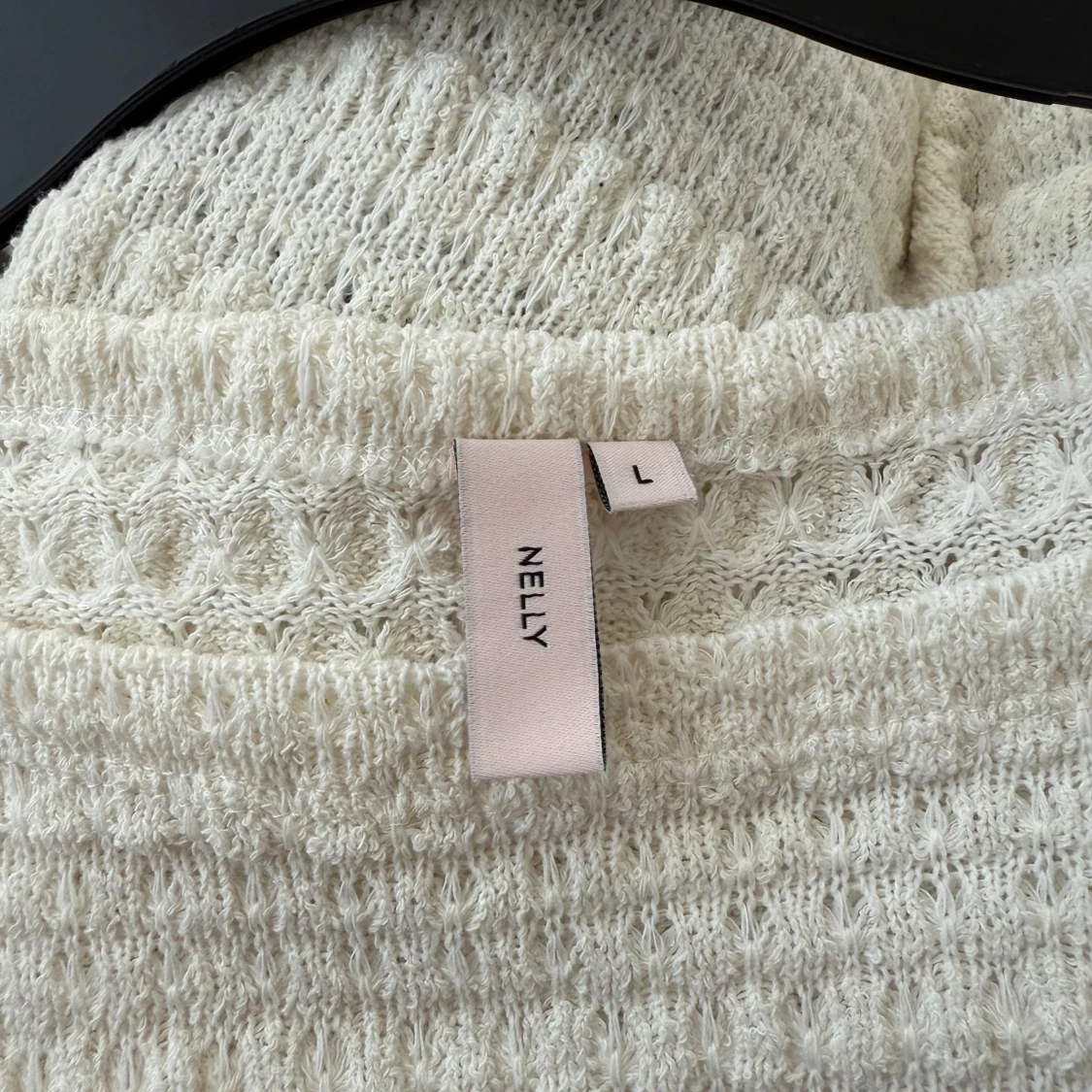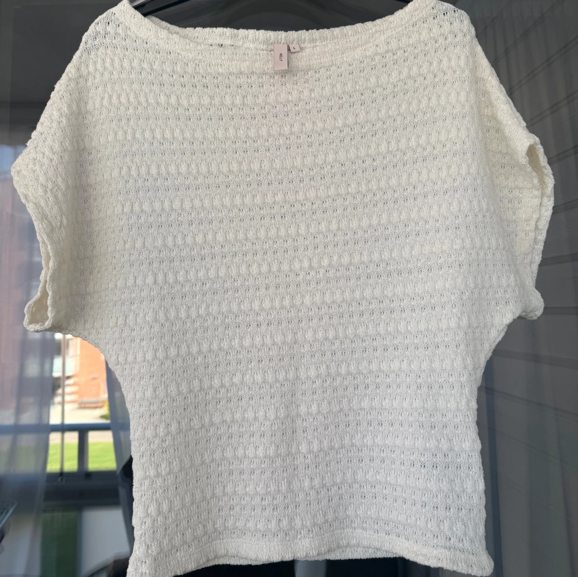 Superfin virkad offwhite/beige topp. Mindre i storlek jämfört med deras "Stunning Structure Tee", så skulle säga att den passar bättre en i storlek M om inte till och med en S. Säljs då den ej passar mig, har enbart provats och tvättats ren efter inköp. Garanterat hel & fin! 😍🙌🏼