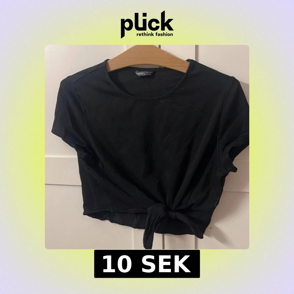 Säljer en svart kortärmad topp från Shein med knytning framtill. Perfekt för en avslappnad stil. Toppen är i en mjuk bomullsmix och har en rund halsringning.