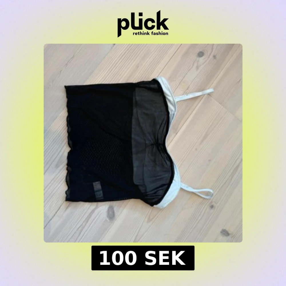 Snygg linnetopp med svart mesh-tyg och vita detaljer. Toppen har tunna, justerbara axelband och en lätt transparent look. Perfekt för lager-på-lager eller att styla med jeans. Enkel men trendig design som sticker ut.