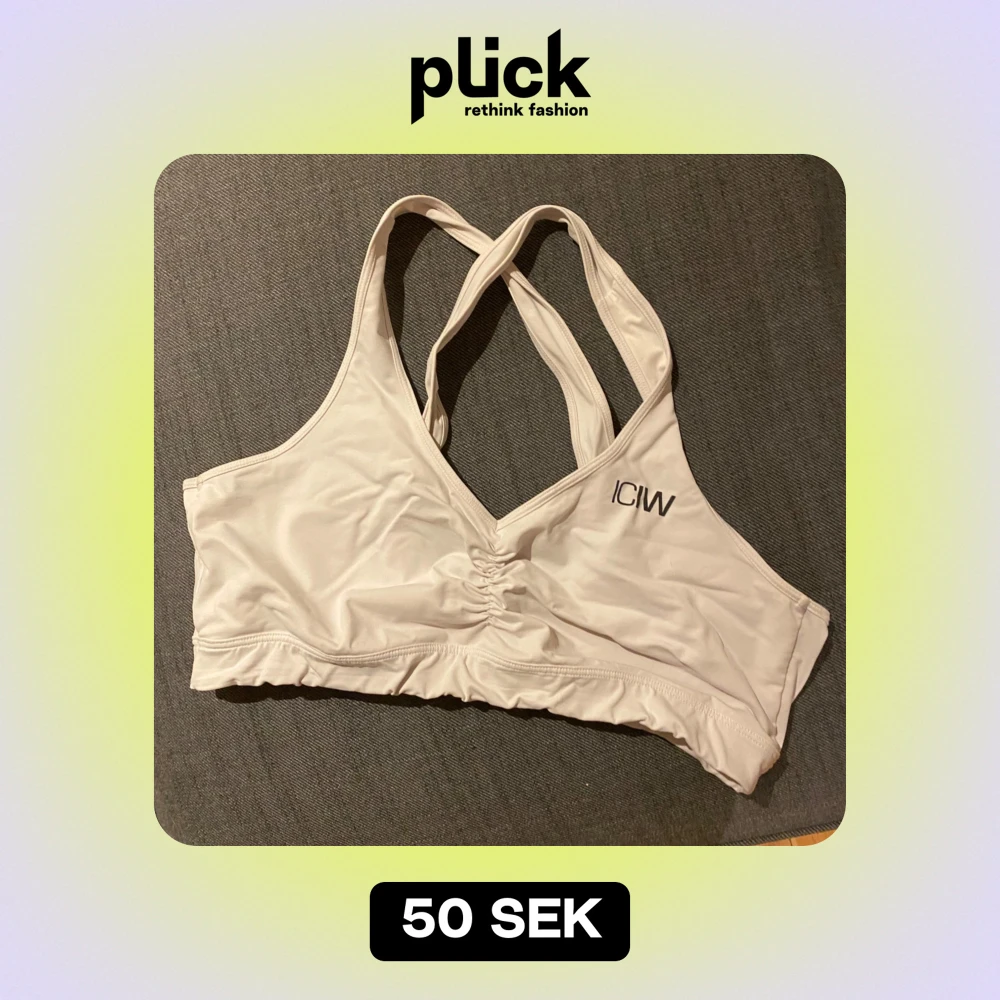 Vit sport bh från ICIW. Använd några gånger & i superfint skick. Storlek L men lappen är bortklippt. Passar M-L.