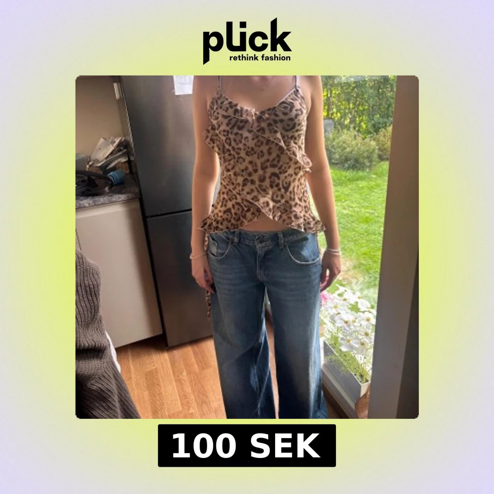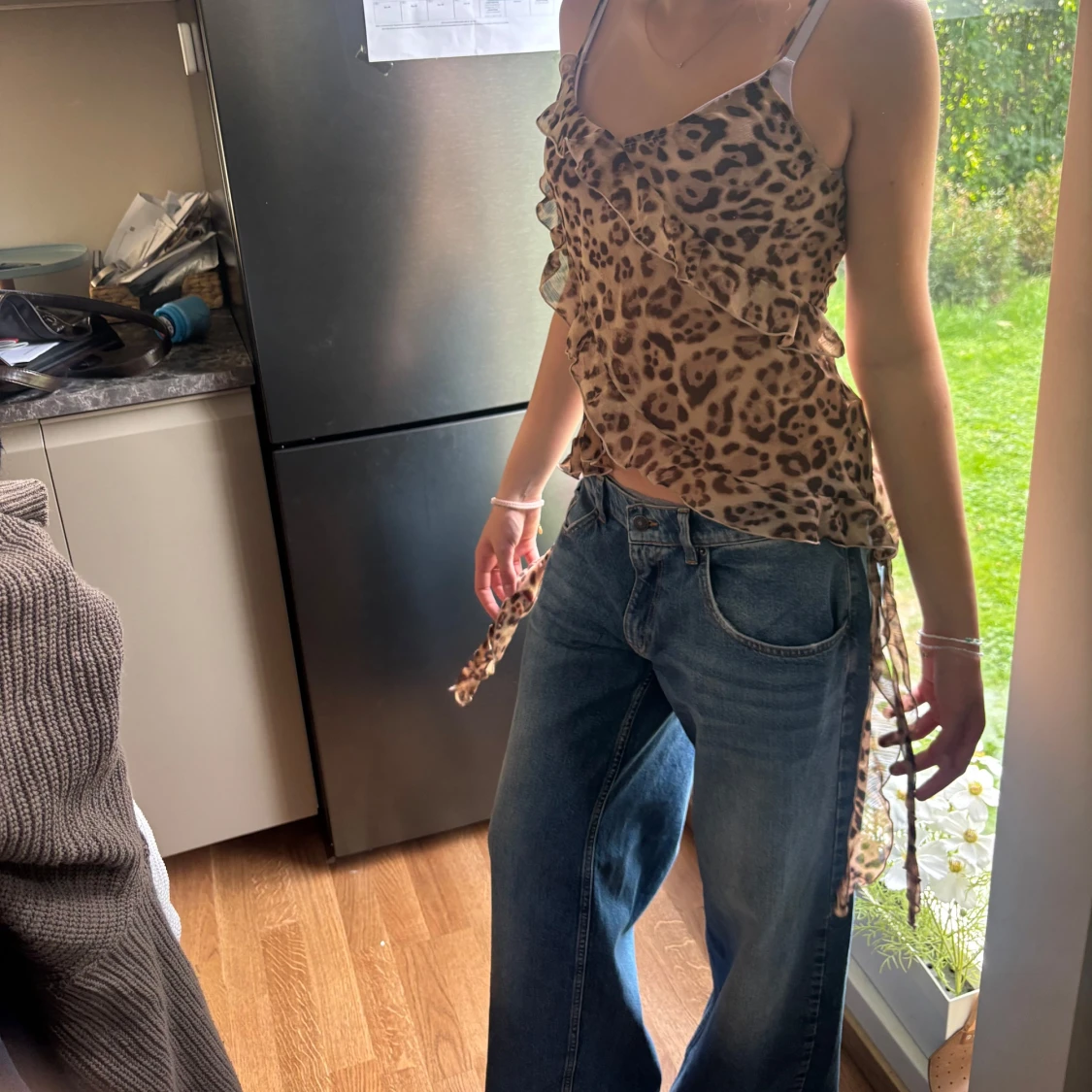 Säljer en leopardmönstrad omlottopp med tunna axelband och volangdetaljer. Toppen har knyt i sidorna och är croppad med en snygg v-ringning. Perfekt för dig som vill sticka ut med ett djurmönster och coola detaljer.