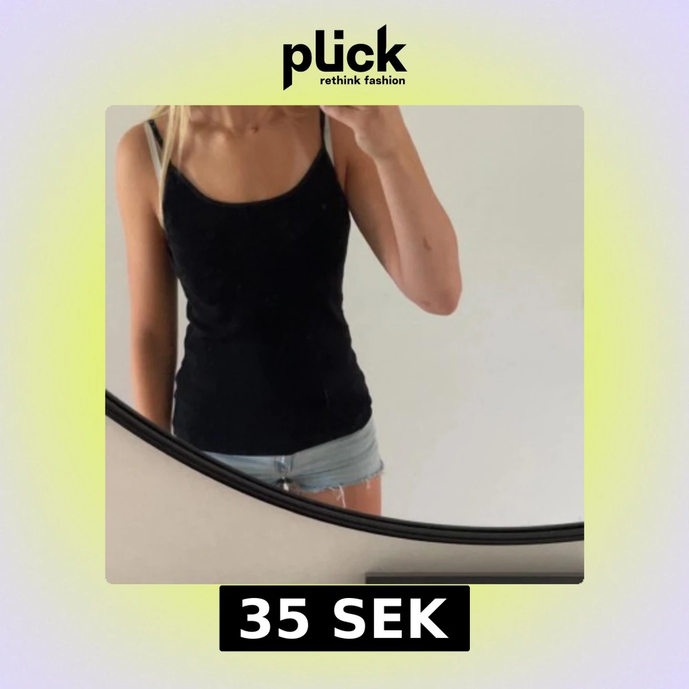 Enkel och stilren svart linnetopp med smala axelband och rundad urringning. Perfekt att matcha med jeansshorts eller kjol för en avslappnad look. Sitter tight och är superbekväm på sommaren. Det står att de är strl L men funkar som s-M