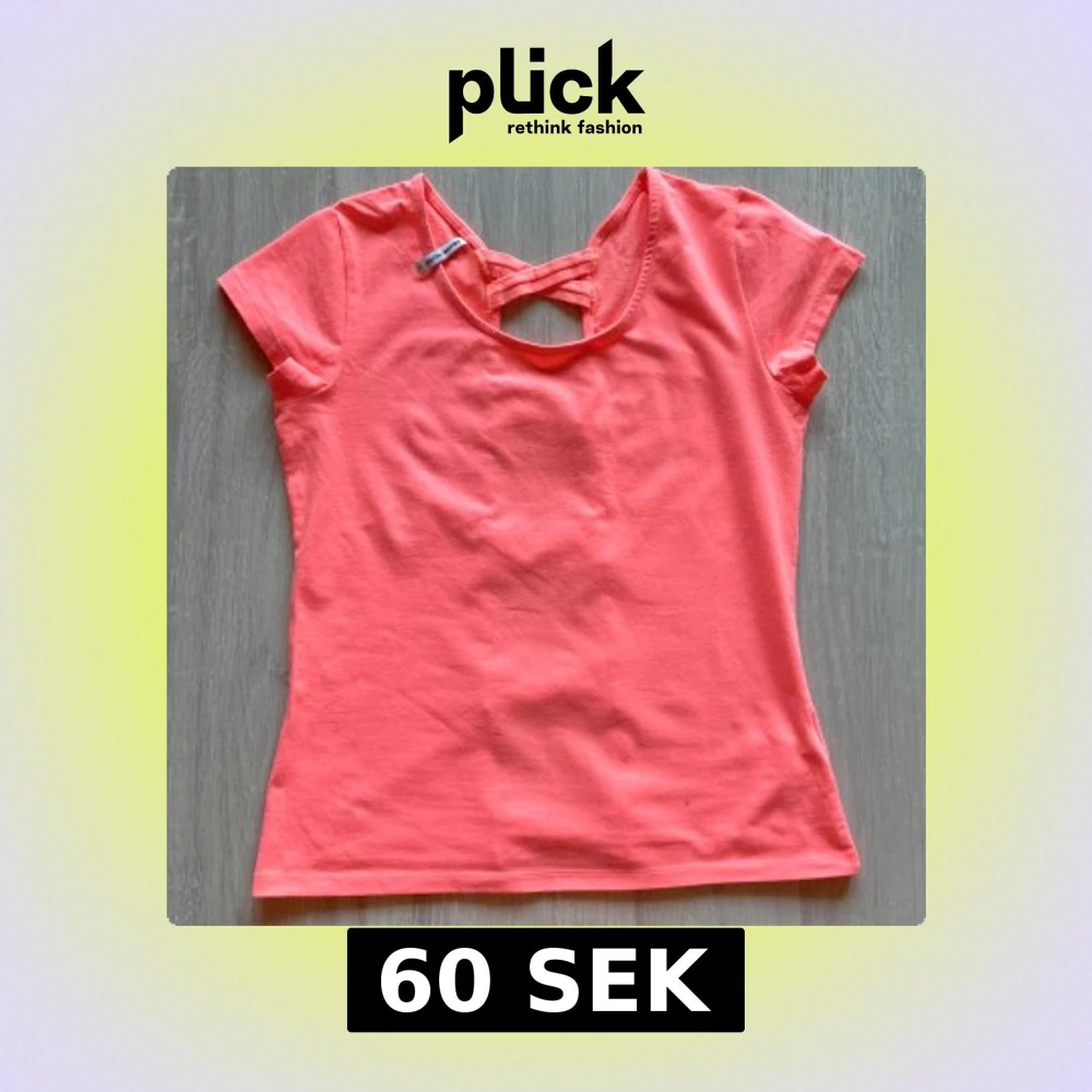 Säljer en korallrosa topp med korta ärmar och unik snörningsdetalj i ryggen. Toppen har rund halsringning och är tillverkad i mjuk bomull. Perfekt för dig som vill sticka ut med en cool detalj på ryggen!