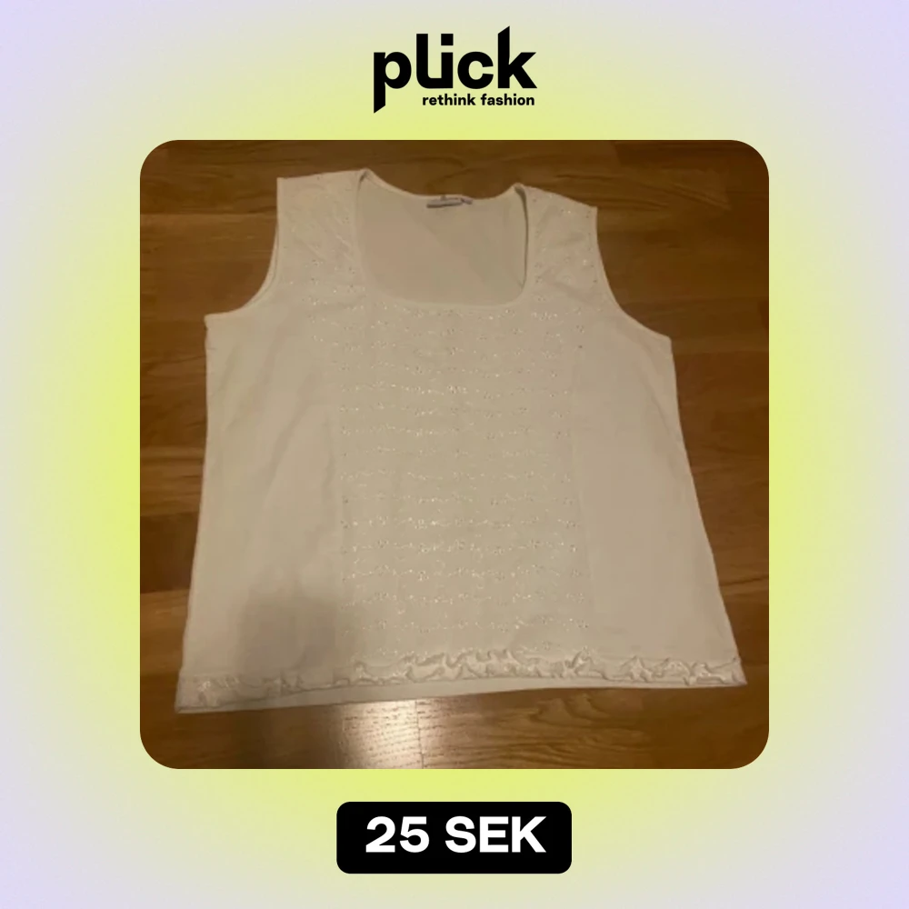 Vitt linne med söta detaljer i storlek L men sitter mer som S/M đ jĂ€tte fin pĂ„ och i bra skick